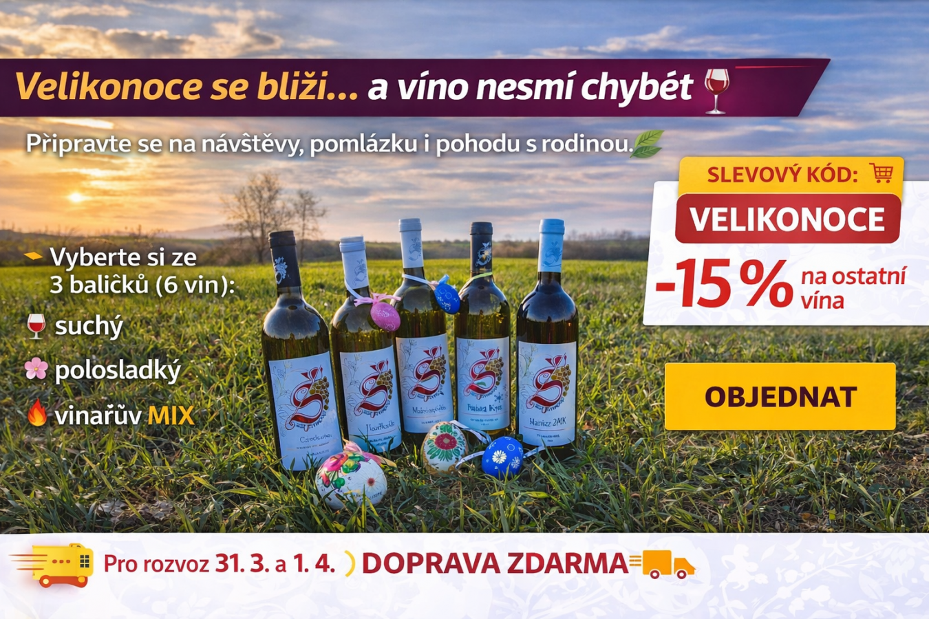 Velikonoční balíček polosladkých vín z vinařství U Štipčáků. Ovocná, aromatická vína ideální pro jarní pohodu, návštěvy i jako originální dárek. Obsah balíčku: Chardonnay...